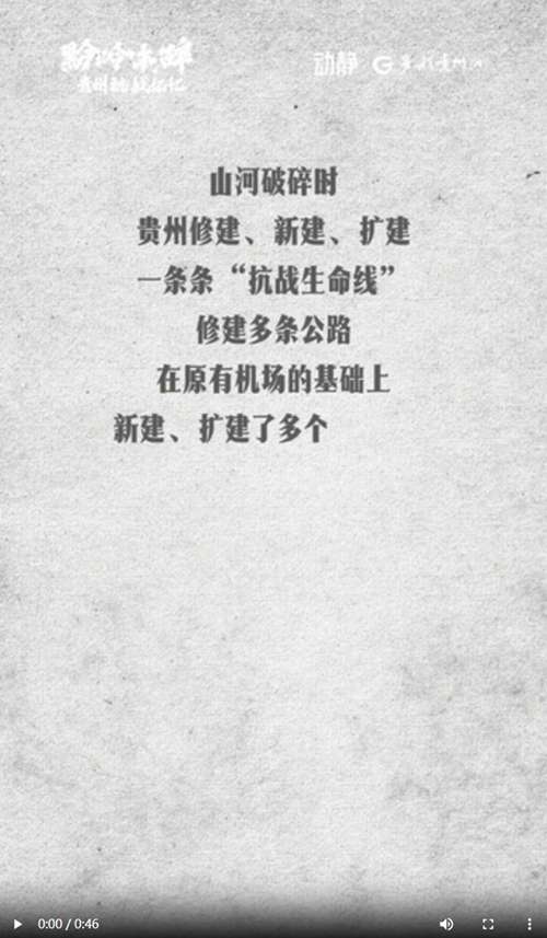 山河破碎时,贵州修建、新建、扩建一条条“抗战生命线”。修建多条公路,在原有机场的基础上,新建、扩建了多个军事机场。黔桂铁路相续通车独山、都匀。抗日救亡时,贵州人民用身躯筑起一条条“血肉运输线”,仅二十四道拐就运输了45万吨的武器弹药、油料。转运民族救亡希望,输入中华决胜力量。