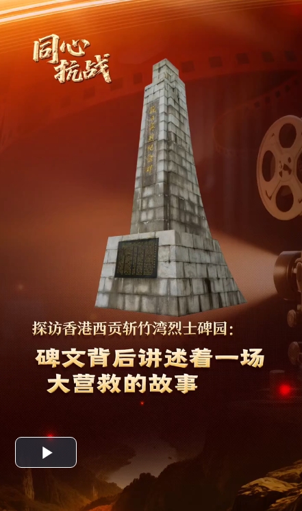 在香港西贡斩竹湾,纪念东江纵队港九独立大队的烈士碑园坐落在面朝大海的山岗上,20米高的纪念碑上镌刻着“抗日英烈纪念碑”七个大字。抗日英烈纪念碑碑座上有一段碑文,讲述着那场大营救的故事。(记者 韩星童 孙悦)