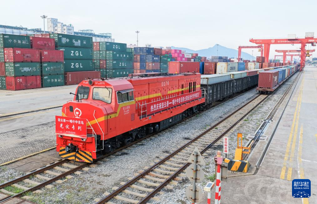 8月29日,在位于江苏连云港市的中哈(连云港)物流合作基地,满载50个集装箱的光伏专列发车,这是中哈(连云港)物流合作基地开行的首列光伏专列。该趟列车抵达喀什北站后,货物再通过汽车运抵乌兹别克斯坦,与传统的全铁路运输相比,这种铁公联运方式可有效缩短运输距离,并发挥铁路运输的长距离、大运量和公路运输的灵活性特点。