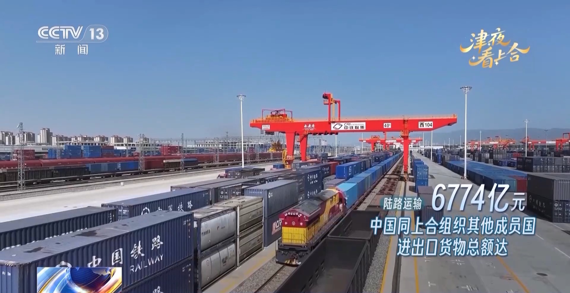 总台央视记者宋菀在天津港北疆港区C段集装箱码头,看到夜晚的天津港灯火通明,不远处有两艘集装箱货轮停泊在岸边,它们装载着机械设备和电子产品等,即将启程前往巴基斯坦卡拉奇港。本周已有11艘上合组织国家的集装箱航线船舶靠泊了天津港,这里已经成为中国与上合组织国家对外开放的重要枢纽之一。