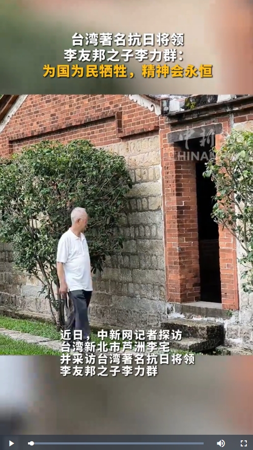 台湾著名抗日将领李友邦之子李力群日前接受中新网采访时指出,人的生命可分为精神和躯壳两部分。若能为国为民牺牲,精神将永恒不朽、万古长新;反之,即便活着也毫无意义。“我会把这句话传递给年轻人。”(记者 张晓曦 制作 代硕 封面设计 宋晓昱)