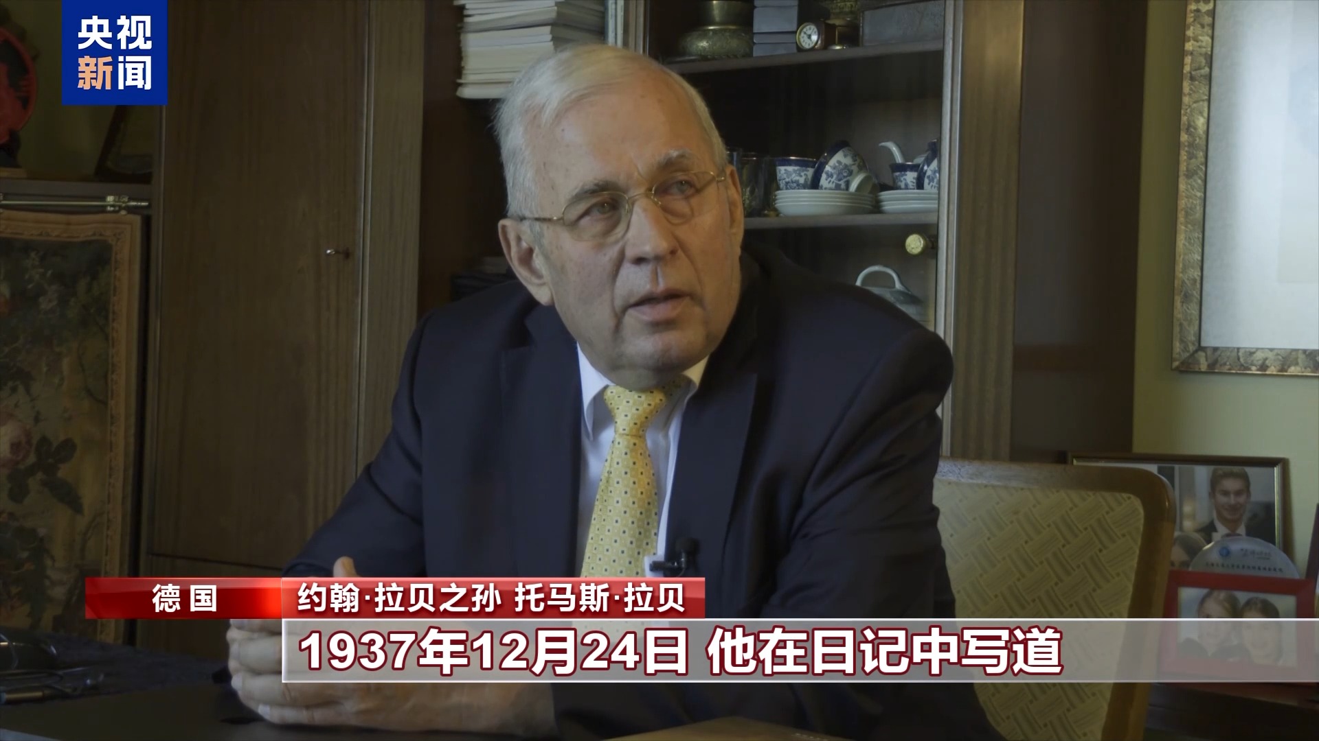 约翰 拉贝之孙 托马斯 拉贝:1937年12月24日,他在日记中写道,“我收到的最好的节日礼物,是我家,我的花园和德国学校里保护的600多名中国难民的生命”。