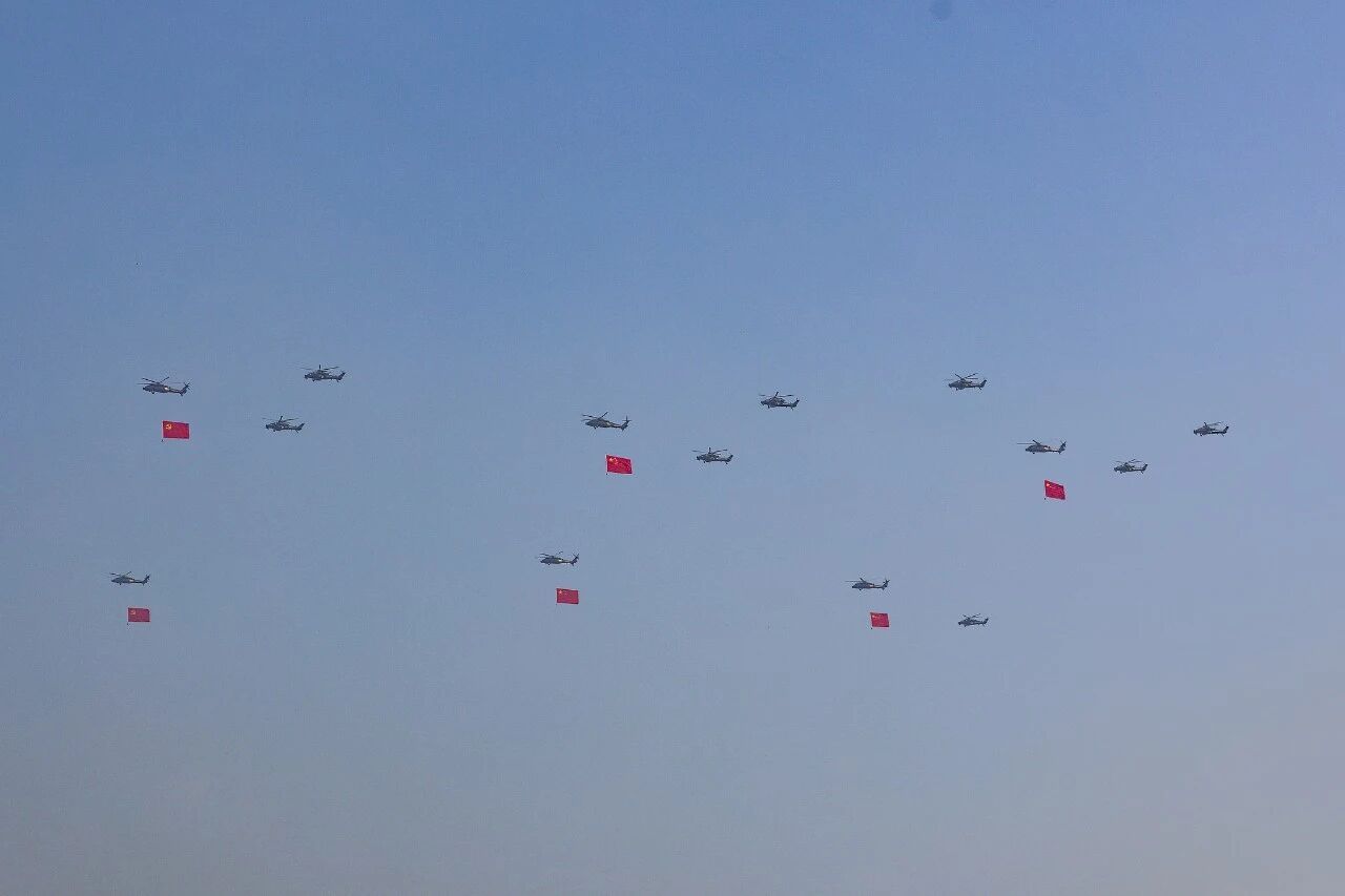 8个空中梯队从远方呼啸而来