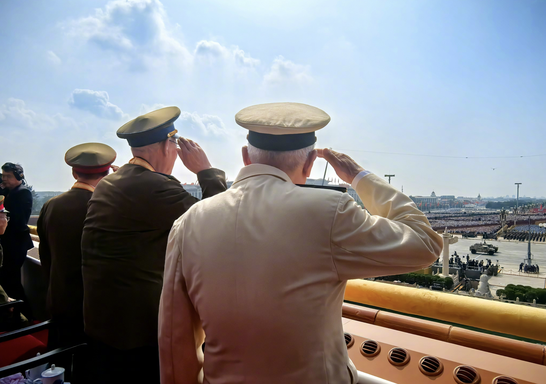 天安门城楼上,参加过抗战的老战士