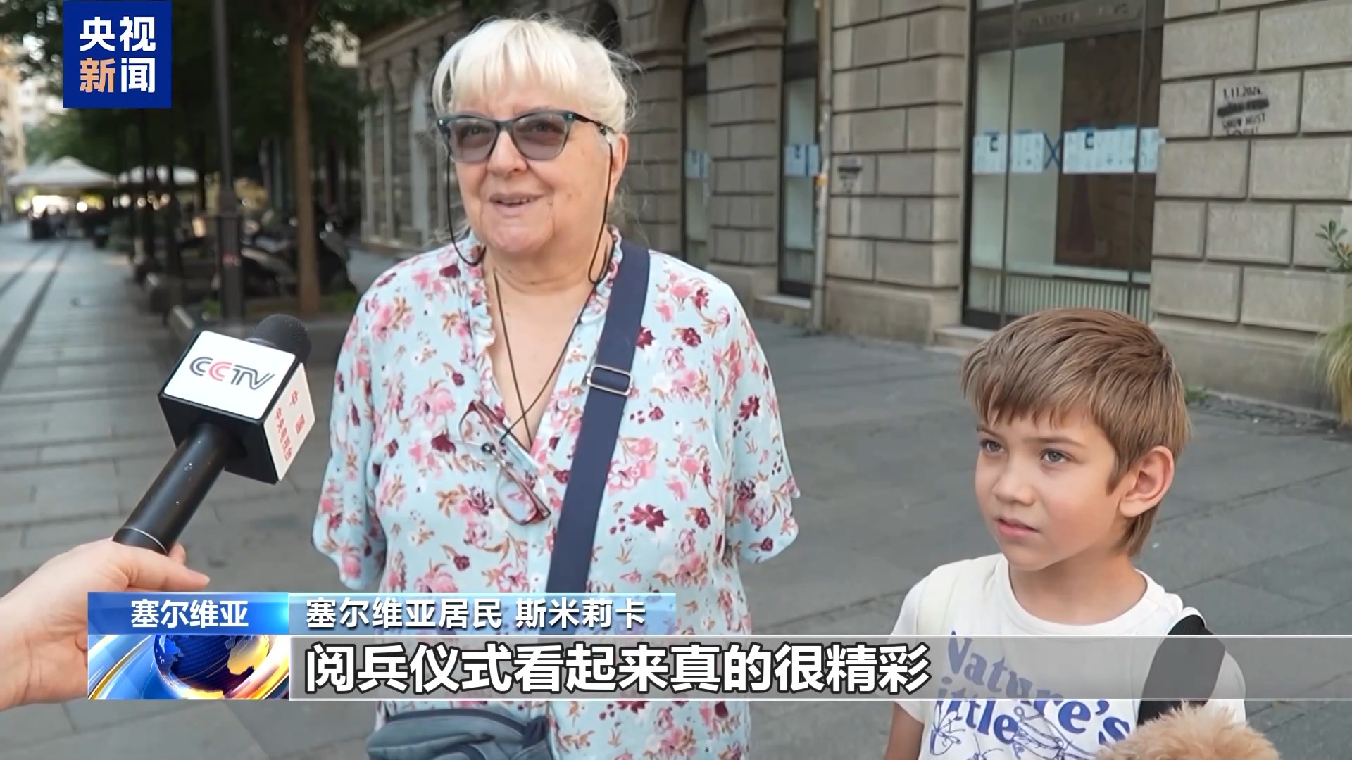 塞尔维亚居民 斯米莉卡:阅兵仪式看起来真的很精彩,非常有气势,也很丰富,我能感受到一股强大的力量。简而言之,很精彩。阅兵仪式展现出了中国人民的爱国情怀和与反法西斯国家的团结,让我印象深刻。