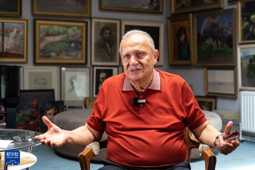 7月16日,亚美尼亚-中国友好协会主席卡连·阿瓦基扬在亚美尼亚首都埃里温接受新华社记者专访。新华社记者 孟菁 摄