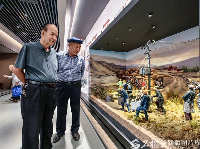 9月8日,库尔勒市市民在巴州铸牢中华民族共同体意识主题展馆讲述库尔勒市近年来的变化。