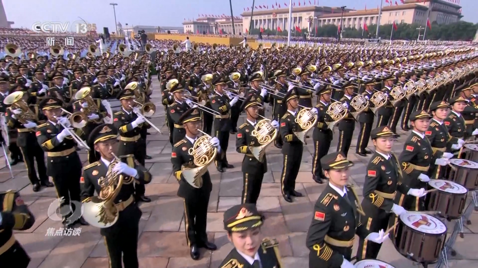 联合军乐团团长黄艳辉:“我们是新中国成立以来第18次组建联合军乐团。这次九三阅兵,我们突出纪念大会隆重庄严的氛围,在队形编排上,我们编排了14个排面,主要寓意14年的抗日战争,联合军乐团是执行国家重大典礼的乐团,我们必须做到既要好听也要好看。”