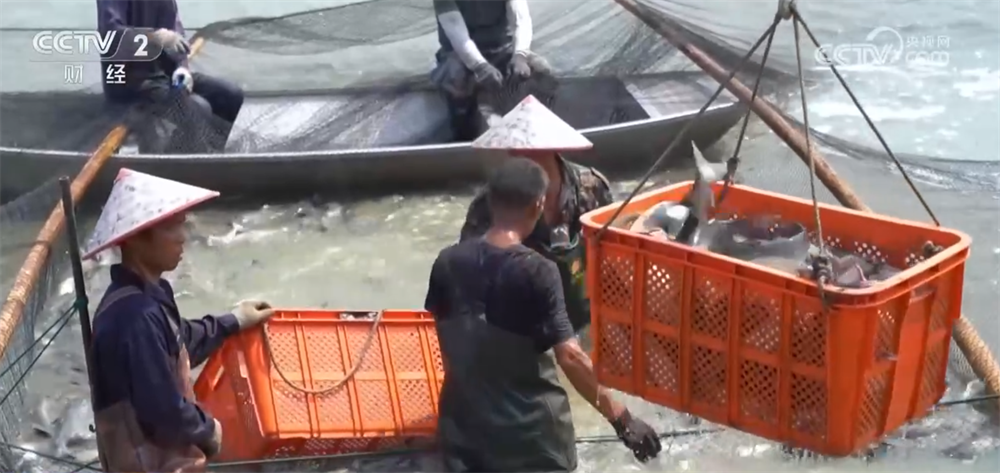 一大早,鱼塘边已是一幅紧张而忙碌的场景。养殖户身着防水服下到水中,合力拉动百米长的围网,向浅水区收拢。随着网口逐渐收紧,千尾鮰鱼在网中翻腾跳跃,水面浪花飞溅。