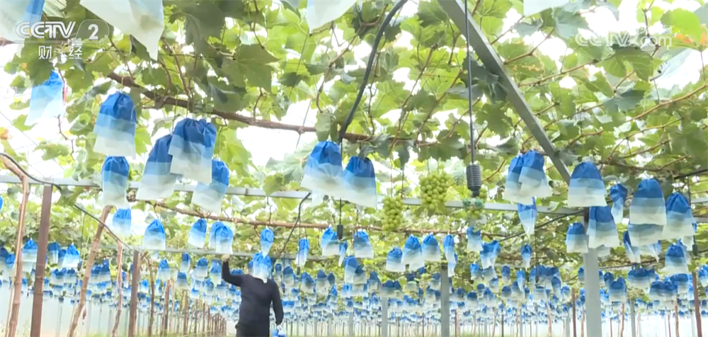 为了推动葡萄产业迭代升级,当地还持续引进了16个优质葡萄品种,并通过技术改良让葡萄错峰上市,助力果农增收。
