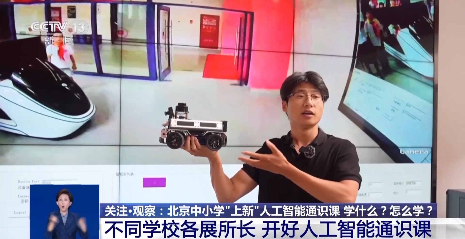 北京市教育委员会副主任 新闻发言人 王攀:面向人人,面向整体,面向实践,注意提升每一个孩子的人工智能素养,同时也注重场景的开发,开发一系列的适合孩子们探索的场景,让孩子们去感知和应用。