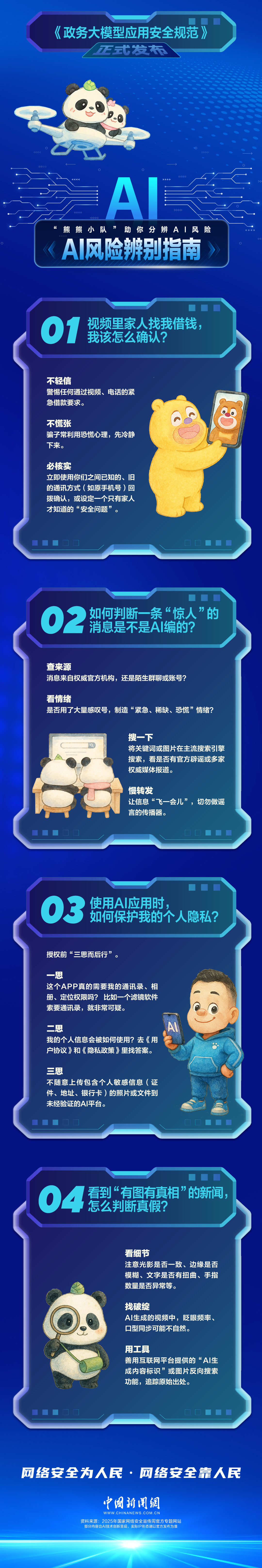 智能生活无忧虑,安全防范要牢记。今天,有一群特别的“网安守护者”——中新网大熊猫“开开”“心心”和“熊出没”人气角色“熊大”“熊二”“光头强”,化身“熊熊小队”,用萌趣方式带你解锁网络安全新知识。