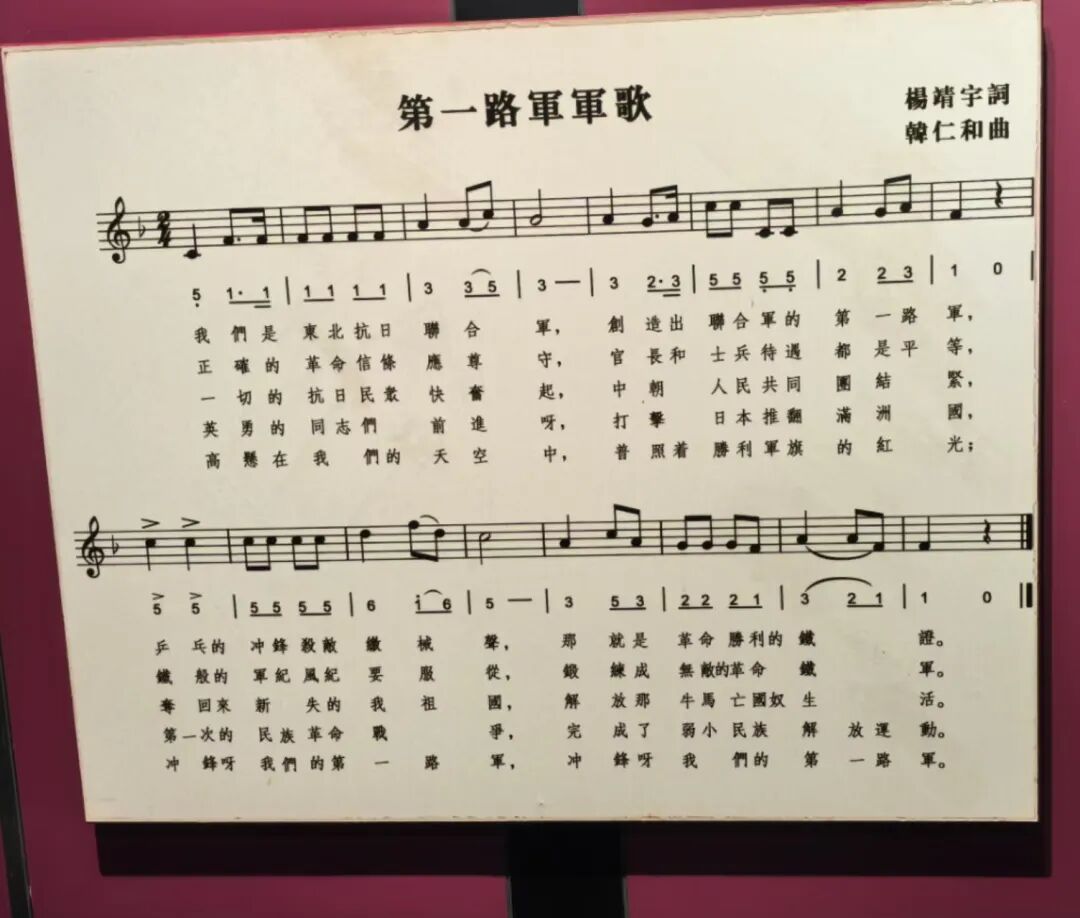 杨靖宇创作的《东北抗日联军第一路军军歌》,唱出了抗联将士们永不屈服坚持战斗的理由:“夺回来所失的我祖国,解放那牛马亡国奴生活”。来源:杨靖宇烈士陵园暨东北抗日联军纪念馆
