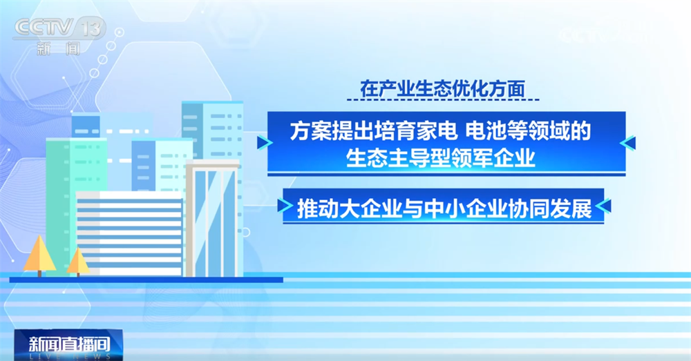 在产业生态优化方面,方案提出培育家电、电池等领域的生态主导型领军企业,推动大企业与中小企业协同发展;分批打造轻工业特色产区,引导企业向中西部转移,淘汰落后产能;通过产融合作、知识产权质押贷款等方式,培育世界一流企业和专精特新“小巨人”企业。