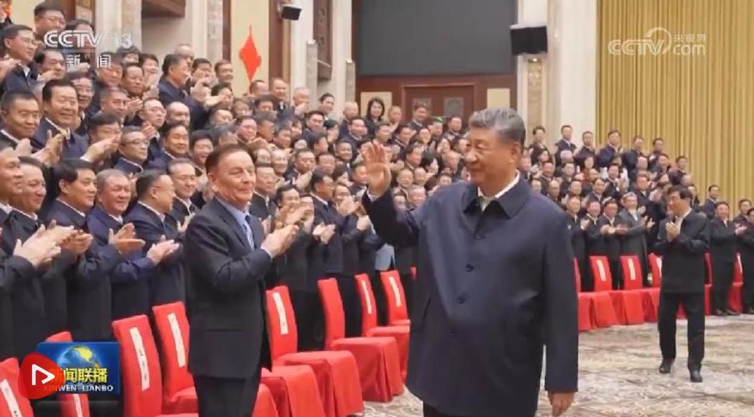 习近平等来到接见现场时,全场响起长时间热烈掌声。习近平向大家挥手致意,不时同代表亲切交流,并同大家合影留念。