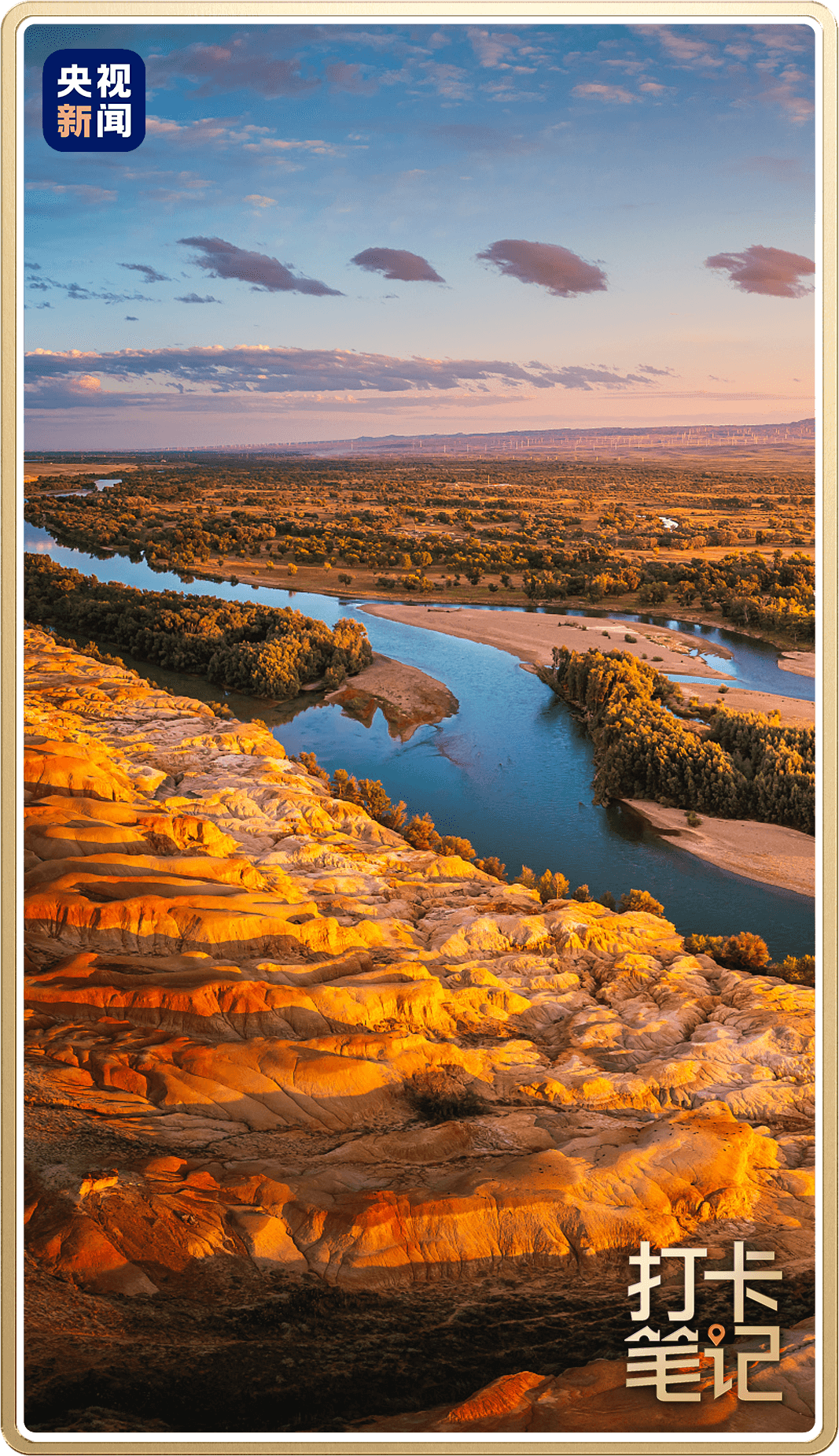 秋季,河流两岸美不胜收,金色、橙黄、红色的植被交织成绚烂多彩的自然画卷。