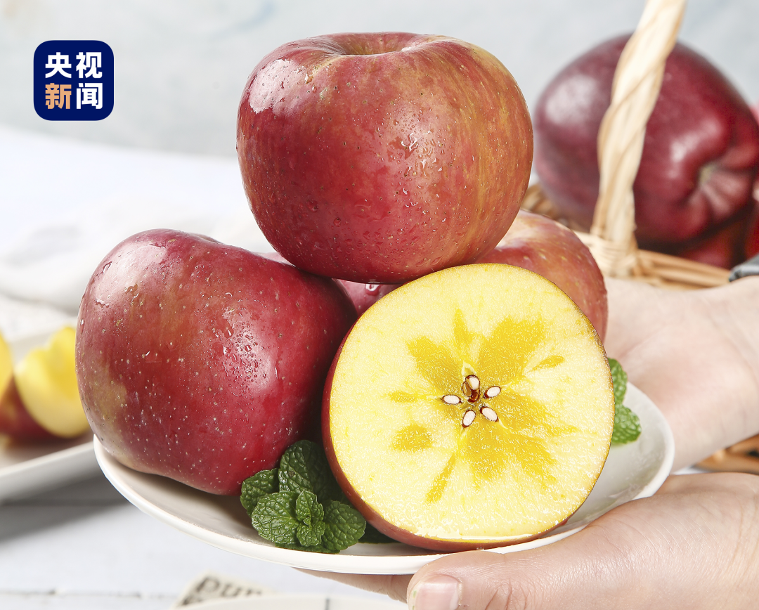 阿克苏苹果:这里的苹果生长期充分,在低温状态下采摘,果核呈透明状被称为“冰糖心”。