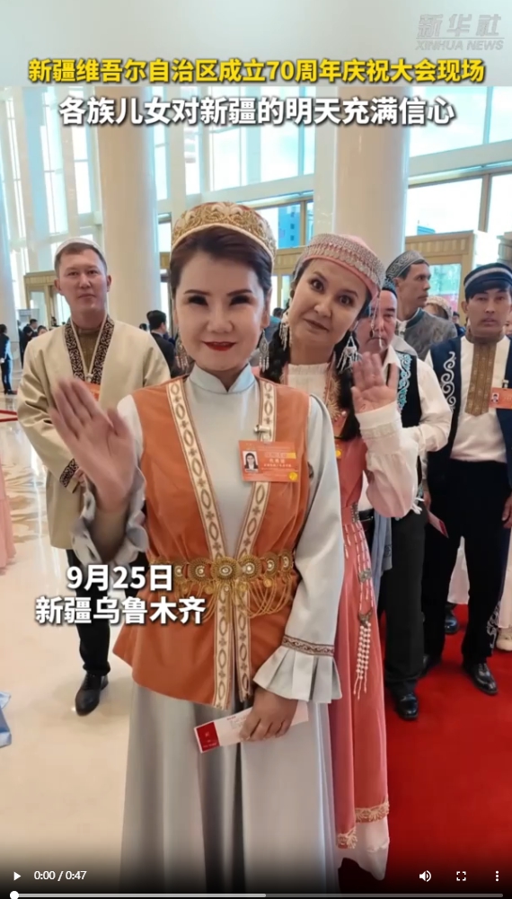新疆维吾尔自治区成立70周年庆祝大会现场,各族儿女对新疆的明天充满信心。