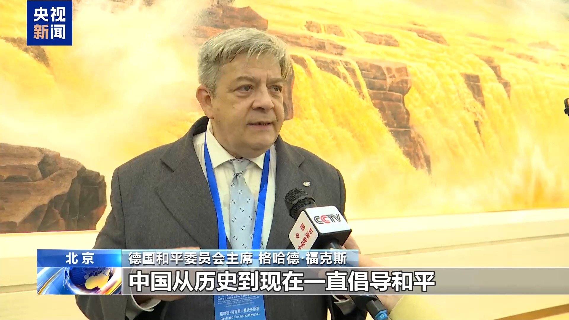 德国和平委员会主席 格哈德·福克斯:中国从历史到现在一直都强调和平,不同文明相互尊重、互学互鉴,这对当下非常重要。