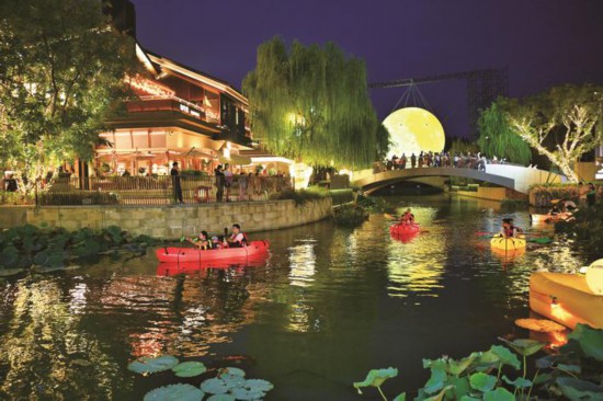 9月21日晚,嘉兴市区南湖天地,一轮巨大的月亮装置在夜色中散发着柔和而明亮的光芒,仿佛将中秋的浪漫氛围提前拉满。市民、游客们泛舟于湖面,任由“月光”与霓虹的光影在水面上交织闪烁,沉浸在这如梦如幻的场景中,感受着中秋佳节的临近,心中满是对团圆与美好的期盼。(徐志达)