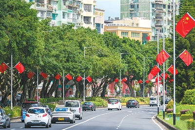 为热烈庆祝中华人民共和国成立76周年,香港和澳门街头装扮一新,处处洋溢着喜庆的节日气氛。五星红旗与港澳区旗迎风飘扬,祝福标语和庆祝海报在街头巷尾随处可见。港澳特区政府与社会各界携手推出了一系列丰富多彩的庆祝活动和优惠措施。