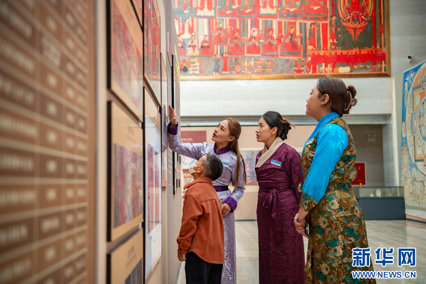图为群众参观“镌刻高原 绘见古今”阿里岩画与壁画艺术特展(9月26日摄)。新华网 旦增努布摄