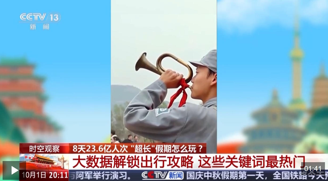 国庆佳节,红色旅游热度飙升。去天安门广场看升旗、去井冈山感受革命热情、去韶山瞻仰伟人故居是最火爆的红色旅游项目。很多红色景区通过观众互动参演的沉浸式体验,把景区变成大型“剧本杀”现场,吸引了越来越多的年轻游客。像临沂红嫂家乡旅游区、保定地道战遗址和百色起义纪念园的游客量就比去年同期增长超30%。