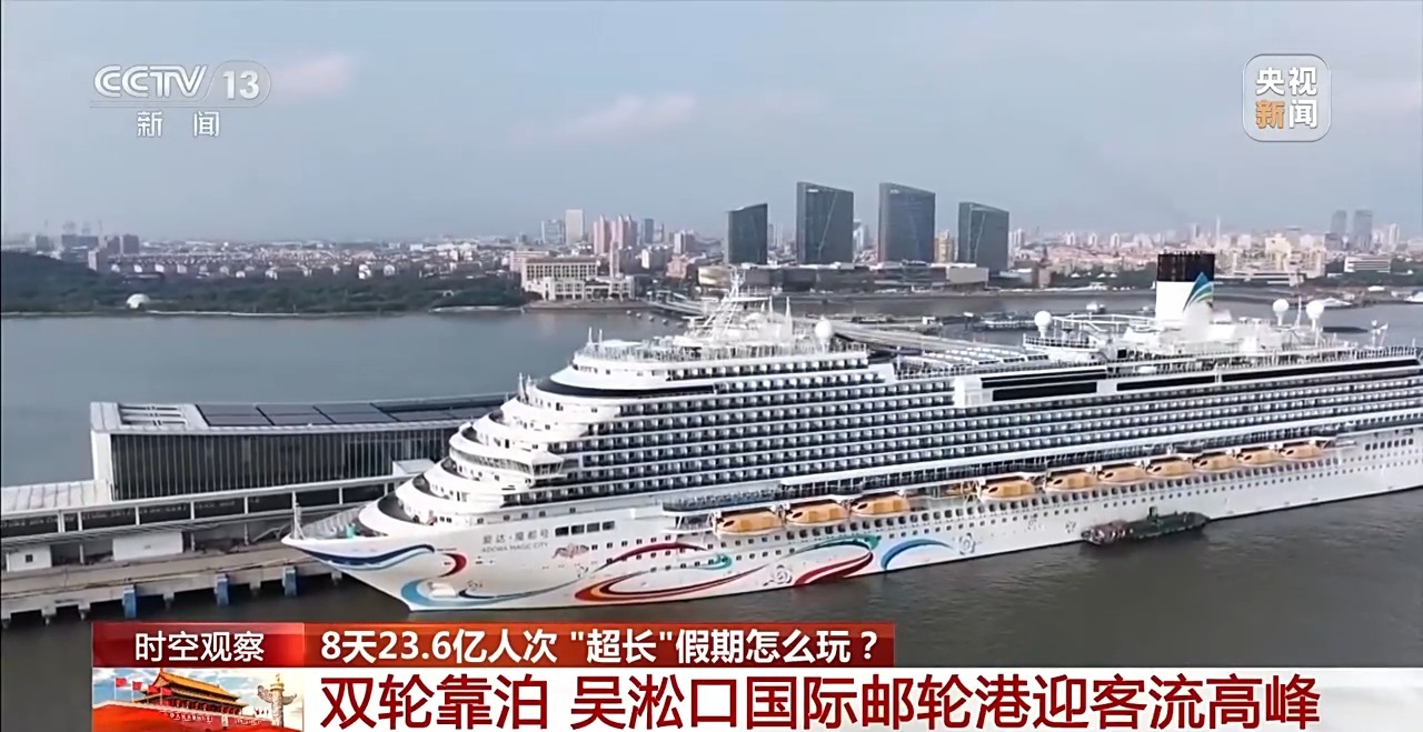 在上海的吴淞口国际邮轮港,今天“爱达魔都号”和“海洋光谱号”两艘大型邮轮同步靠泊,近万名旅客开启全新航程。