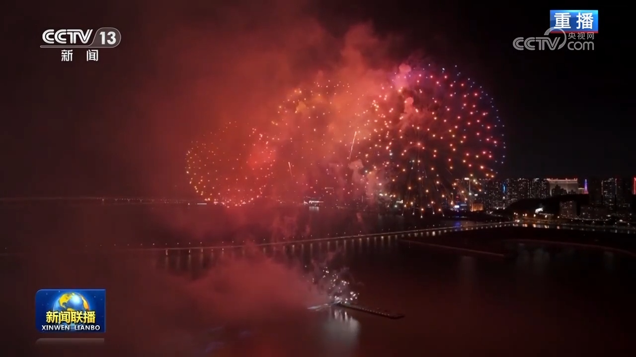10月1日,香港在维多利亚港举行国庆烟花汇演,超过3万枚烟花照亮夜空。汇演中还特别融入了东江水、大熊猫和全运会等元素,吸引众多市民和游客前来观看。在澳门,伴随《七子之歌》等歌曲,不同造型的烟花在夜空中绽放,表达对祖国的美好祝福。当晚还举行了“火树银花嘉年华”,为观众提供更多观赏乐趣。