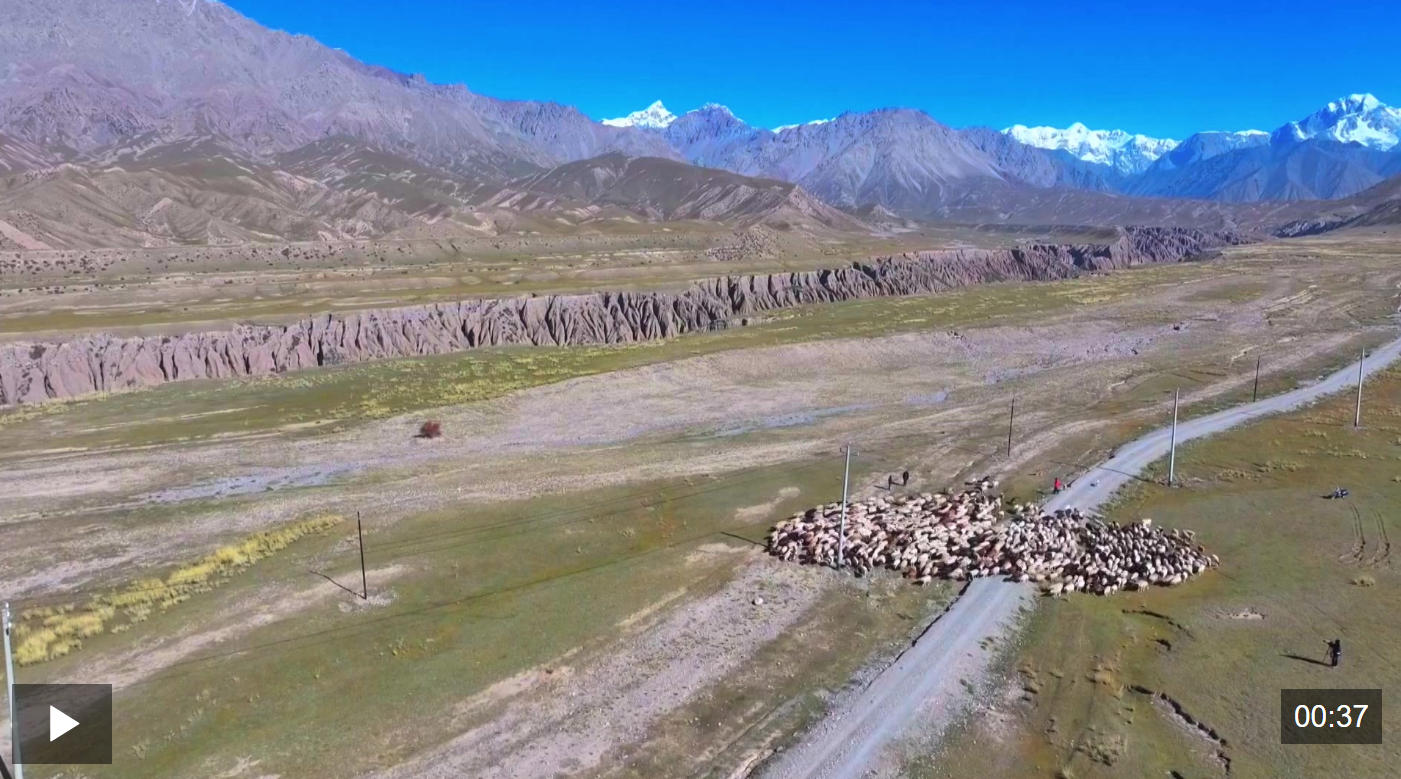 金秋时节,随着气温逐渐降低,新疆阿拉尔市永宁镇天山牧场启动秋季羊群转场,6000余只羊从夏季高山牧场向山下养殖点转移。