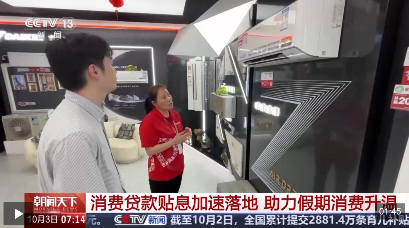 消费者 王先生:我想一次性把家电买齐,所以借了消费贷。有国家的补贴,缓解了我的资金压力,其次就是它操作其实比较方便,比较快速地就能把我想买的都买齐。