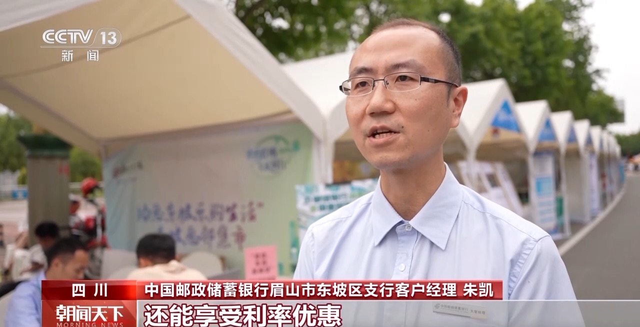 中国邮政储蓄银行眉山市东坡区支行客户经理 朱凯:针对本次消费季活动,我们专门开通了消费贷款绿色审批通道,客户可以直接线上办理消费贷款,实时审批,快速放款,还能享受利率优惠。