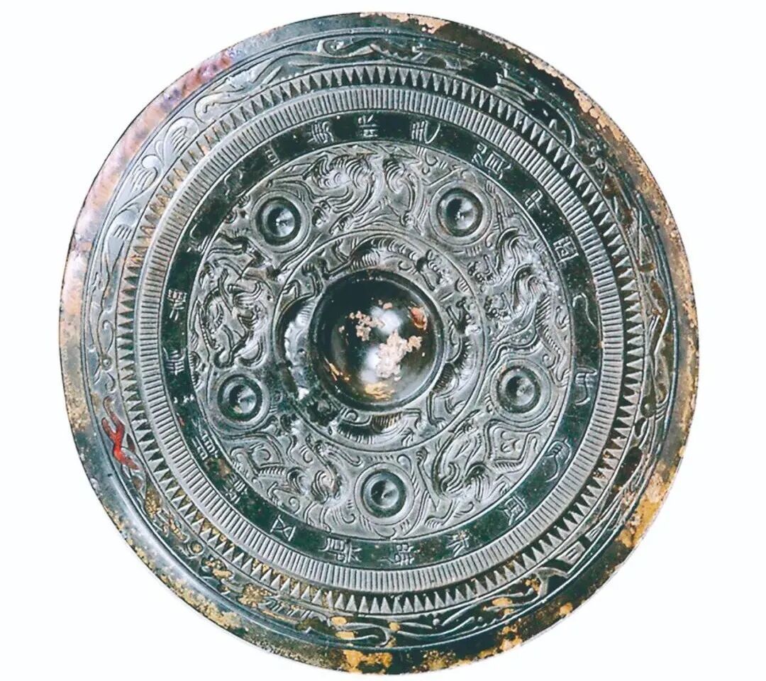 这面“中国人民”五乳神兽镜以神兽纹为主题,是汉代铜镜较多见的装饰题材。难得的是,镜主体纹饰外围所铸铭文中出现了“中国人民”。