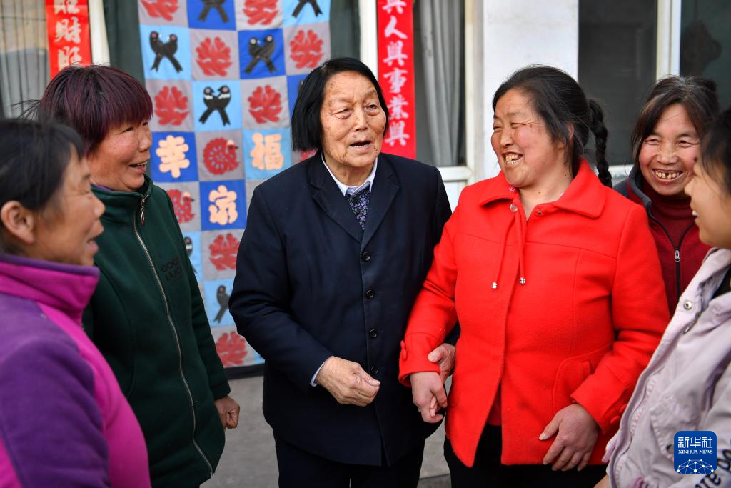 2019年3月23日,申纪兰(左三)在山西省平顺县西沟村与村民分享全国两会精神。新华社记者 曹阳 摄