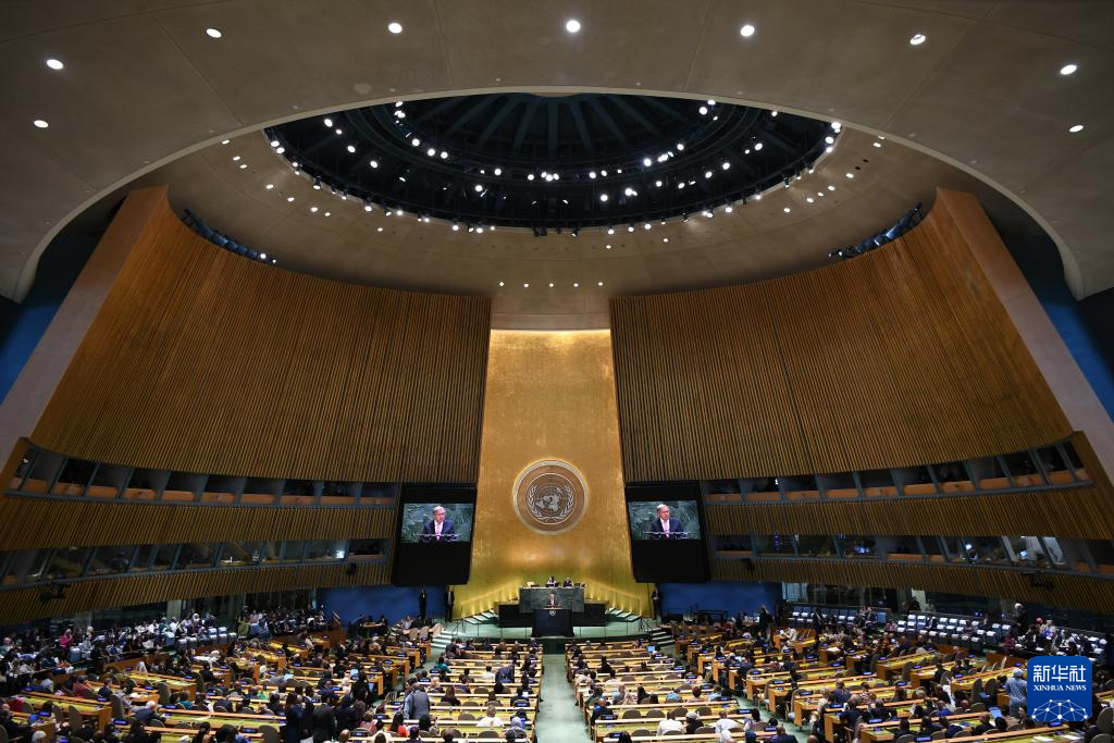 这是2025年9月22日在位于纽约的联合国总部拍摄的联合国大会纪念北京世妇会30周年高级别会议现场。新华社记者 李睿 摄