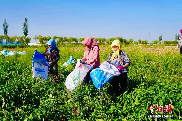 图为杭锦后旗双庙镇辣椒采收现场。 杭锦后旗融媒体中心供图