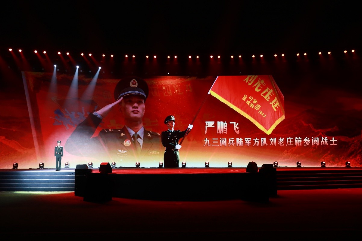 “哪怕只剩一个人,也要守住阵地!人在,阵地在!”这句回荡在舞台上的震耳壮语,正是“刘老庄连”战士用生命刻下的铮铮誓言。那面弹痕累累的“刘老庄连”战旗,始终在烽火硝烟中傲然挺立,如一把不屈的利剑,牢牢指向敌人的方向。