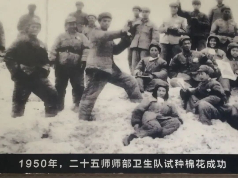 1950年,中国人民解放军第22兵团进入准噶尔盆地玛纳斯垦区。战士们在玛纳斯河流域小拐垦区播种第一季小麦时,在一块三亩的荒地播种了棉花,这块棉田位于今天的兵团第八师136团。当年秋天,三亩棉花地收成不错。兵团人从这发现了改变中国棉花种植史的可能。
