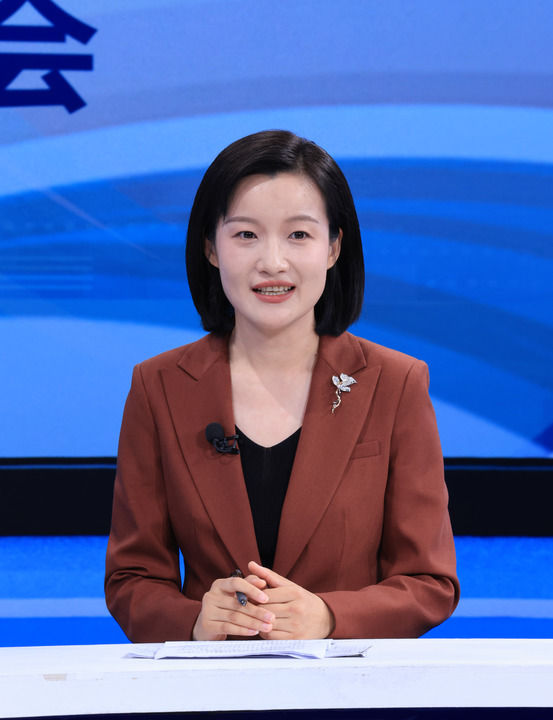国家统计局国民经济综合统计司副司长王冠华在第二十三期“中国经济圆桌会”大型全媒体访谈节目录制现场发言。新华社记者 殷刚 摄