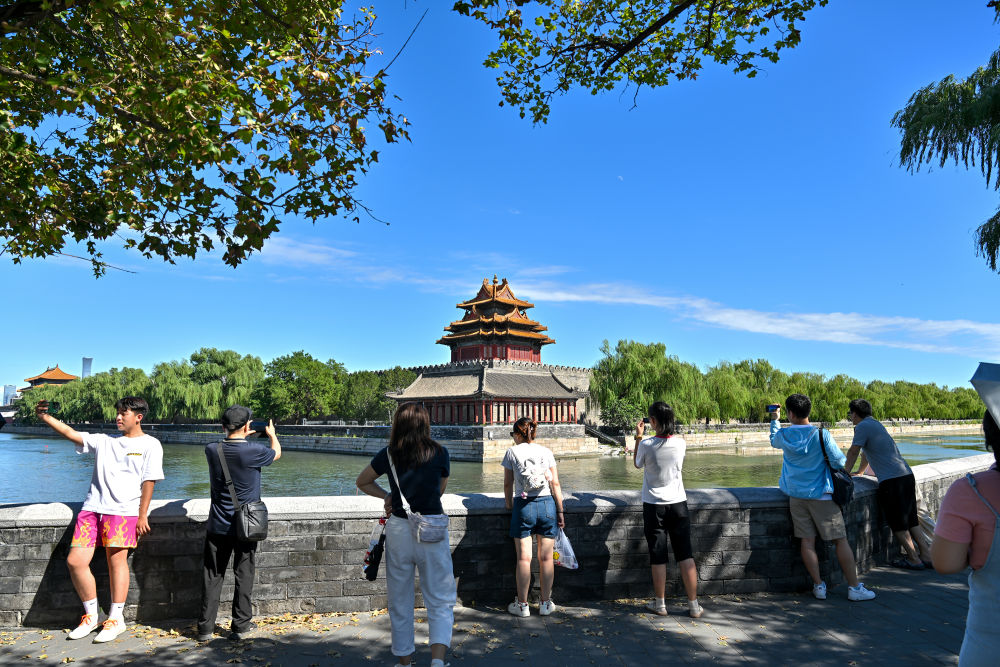人们在拍摄北京故宫角楼(2025年8月12日摄)。新华社记者 李鑫 摄