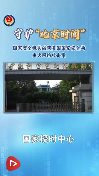 记者从国家安全部了解到,近期,国家安全机关破获一起美国重大网络攻击案,掌握美国国家安全局网络攻击入侵中国国家授时中心的铁证,粉碎美方网攻窃密和渗透破坏的图谋,全力守护“北京时间”安全。