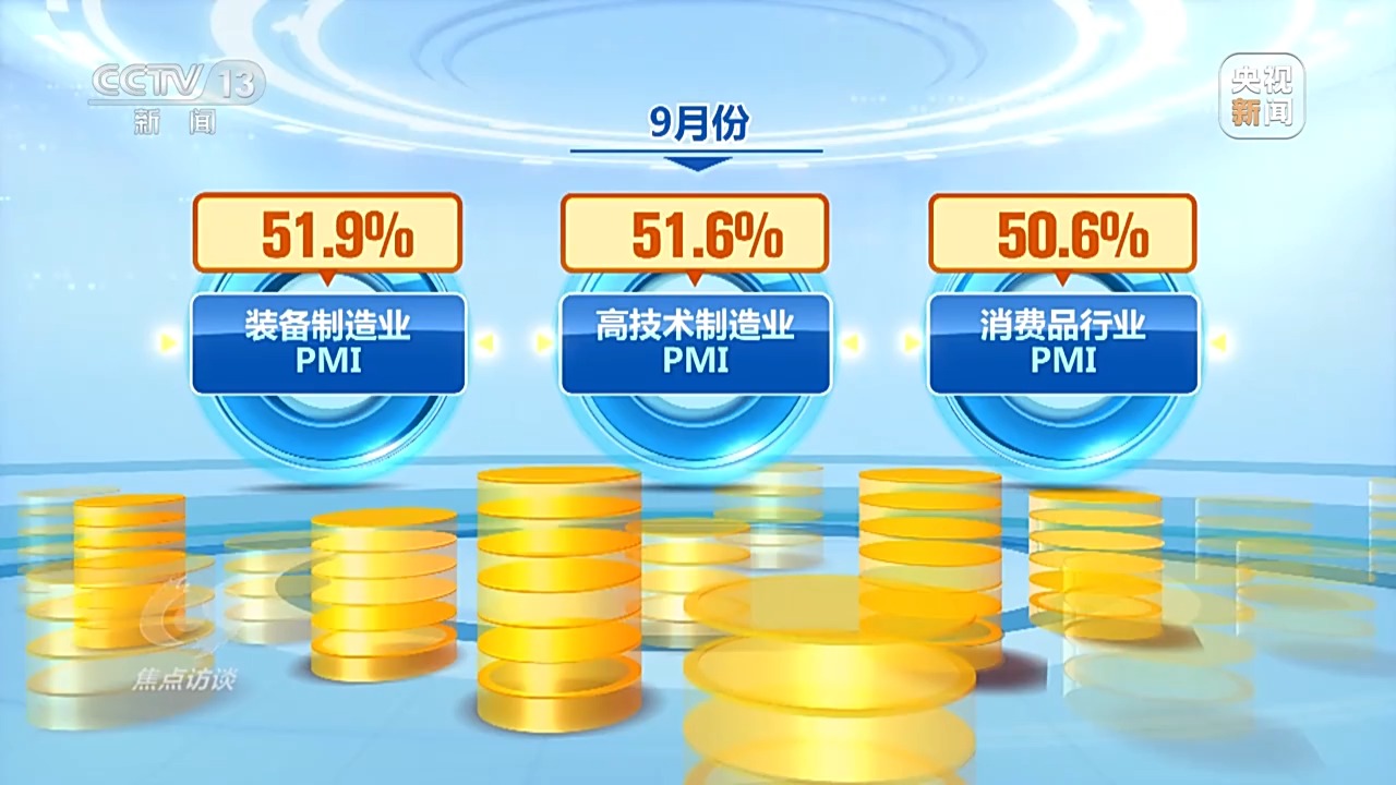 工业企业利润的明显改善释放的是市场需求在增加、价格在回升等积极信号。类似的积极信号,我们在制造业采购经理指数(PMI)中也能看到。9月份,装备制造业、高技术制造业和消费品行业PMI分别为51.9%、51.6%和50.6%,均位于扩张区间。生产经营活动预期指数为54.1%,连续三个月回升。