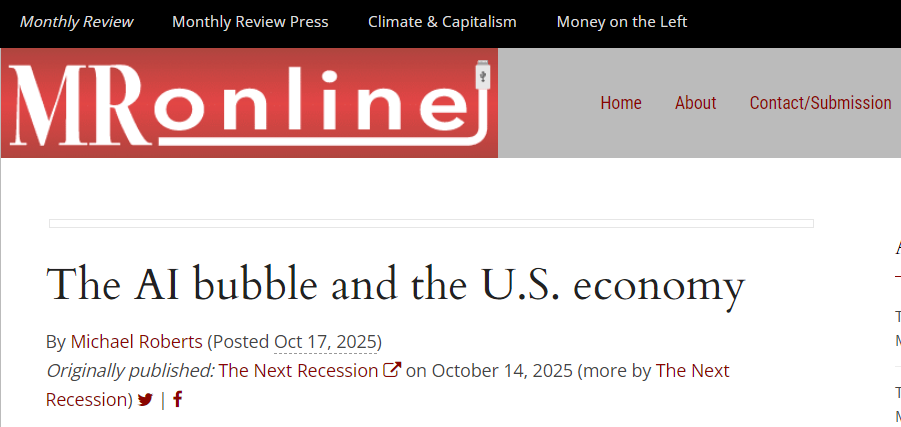 美国《财富》杂志网站报道强调,美国这种泡沫驱动的增长已成“经济喜剧”:美国政府的政策虽然刺激了美股的AI热潮,却忽略了其对整体经济的负面拖累,如就业流失和生产率虚增。