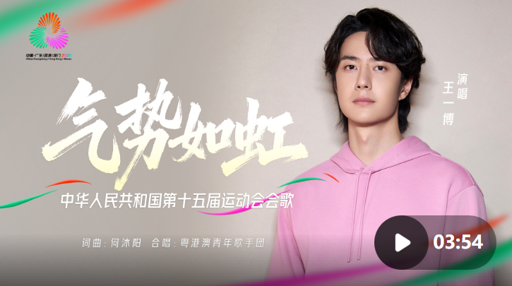 近日,中华人民共和国第十五届运动会会歌《气势如虹》及MV正式发布,包含普通话和粤语两个版本。