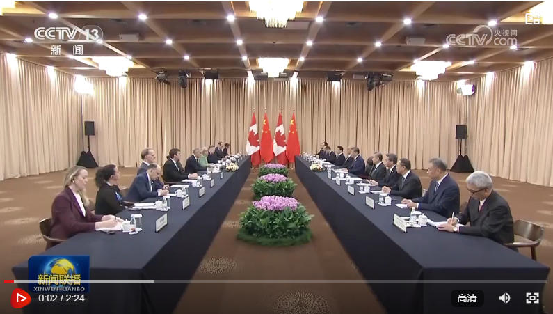 当地时间10月31日下午,国家主席习近平在韩国庆州出席亚太经合组织第三十二次领导人非正式会议期间会见加拿大总理卡尼。