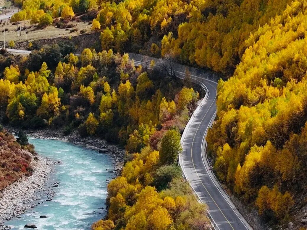 林芝公路旁彩林观景:不爬山的秋日童话