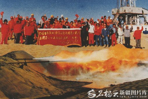 1989年塔中1井喷出高产油气流。塔里木油田供图