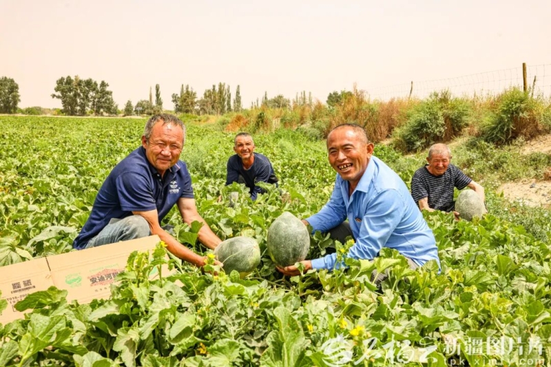 安迪尔河甜瓜收获颇丰,瓜农笑得合不拢嘴(资料图片)。王成凯摄