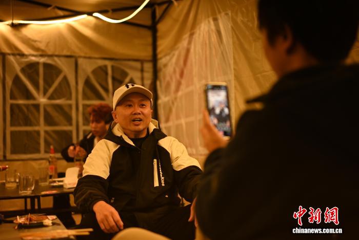 图为李东恩(右一)在朋友的夜市小摊帮忙。张旭 摄