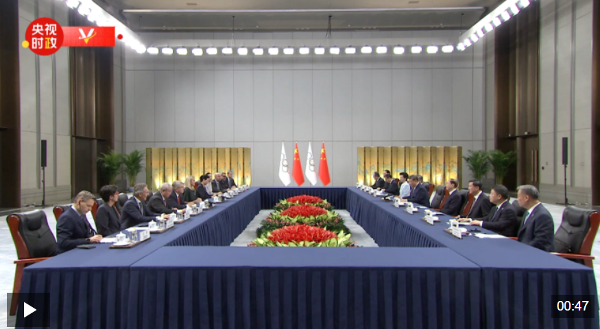 11月9日下午,国家主席习近平在广州白云国际会议中心会见来华出席第十五届全国运动会开幕式的国际奥委会主席考文垂和终身名誉主席巴赫。